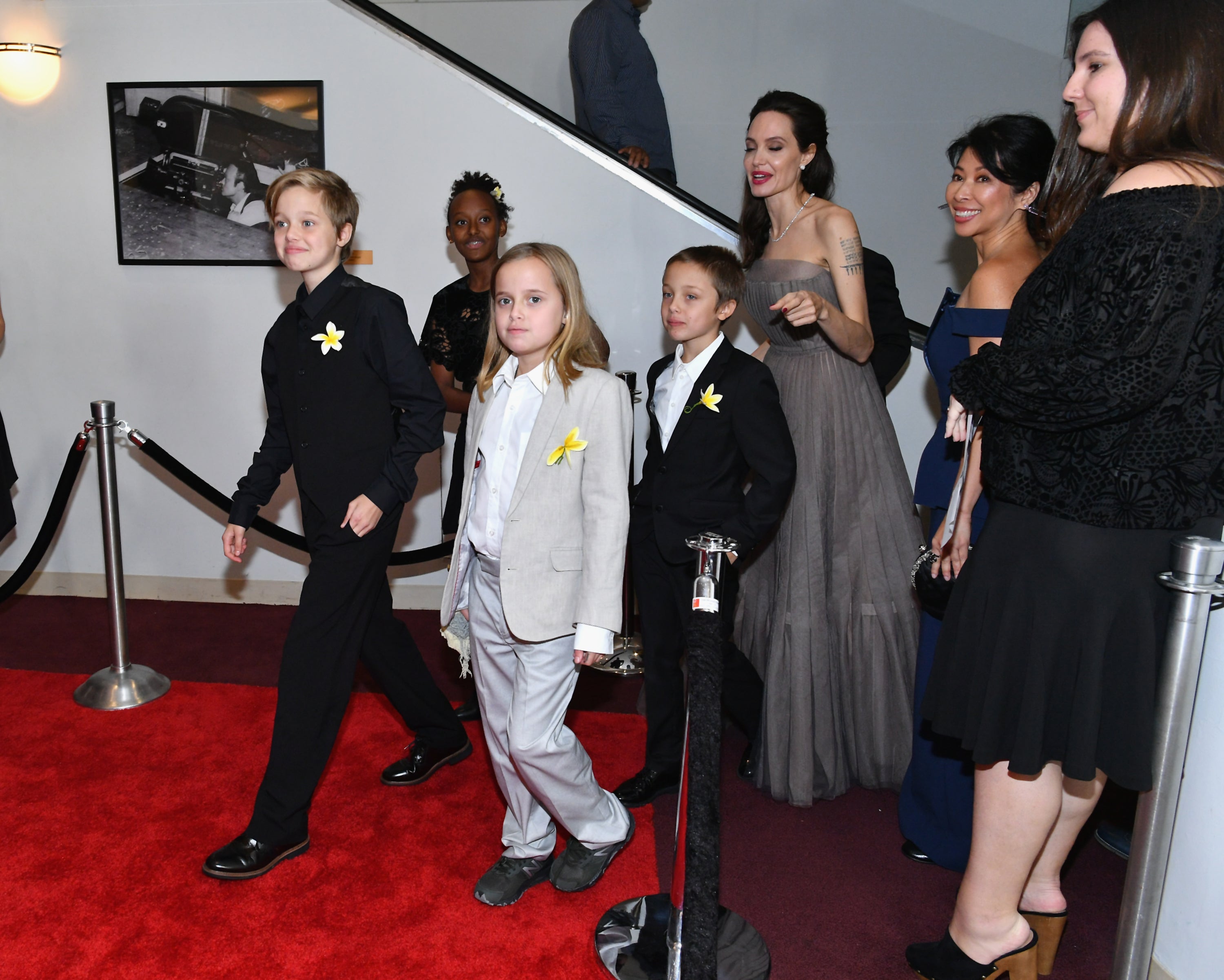 Jolie was joined by all six of her children she shares with Brad Pitt: 16-year-old Maddox, 13-year-old Pax, 12-year-old Zahara, 11-year-old Shiloh, and 9-year-old twins Knox and Vivienne. The actress' oldest two children both helped their mom on the set of First My Killed My Father -- Maddox as an executive producer and Pax as an on-set photographer.