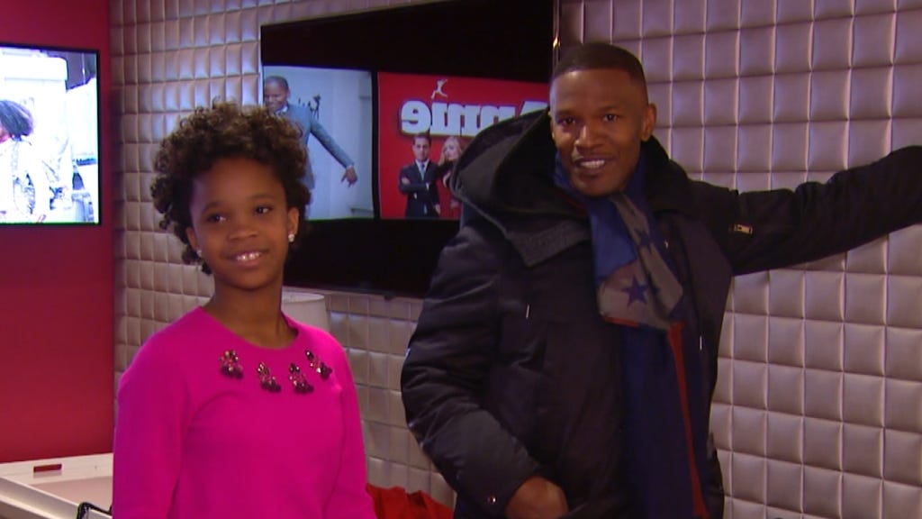 ET caught up with Annie herself 11-year-old Quvenzhane Wallis fresh off her Golden Globe nomination. Her co-star Jamie Foxx stopped by to congratulate her.