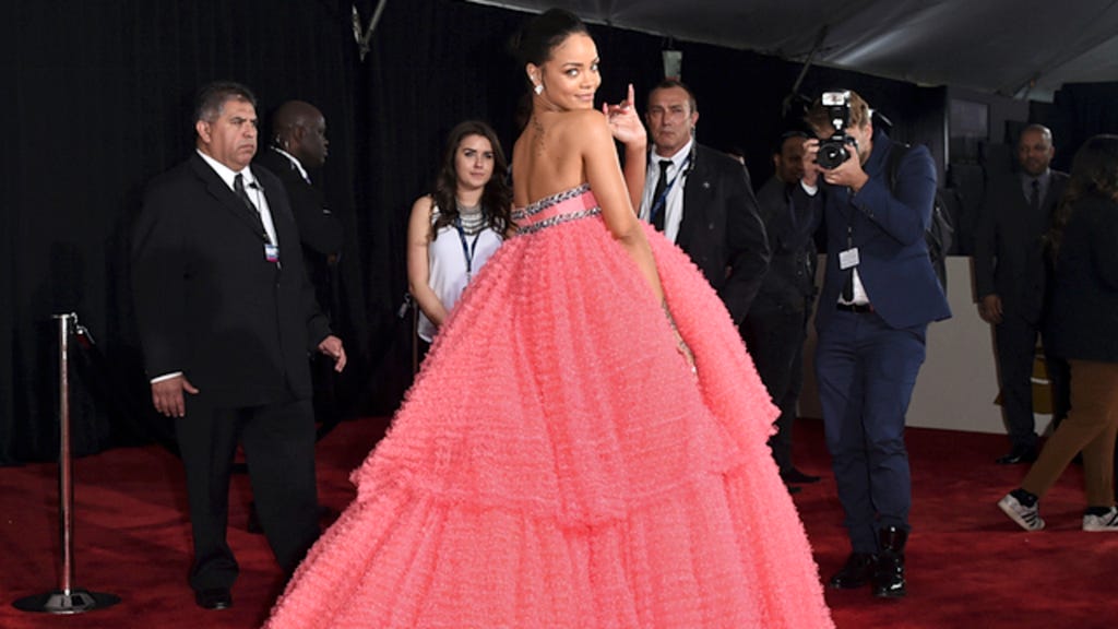 Leave it to Rihanna to show up to the GRAMMYs in something as casual and understated as this giant, pink, poofy Giambattista Valli Haute Couture gown.