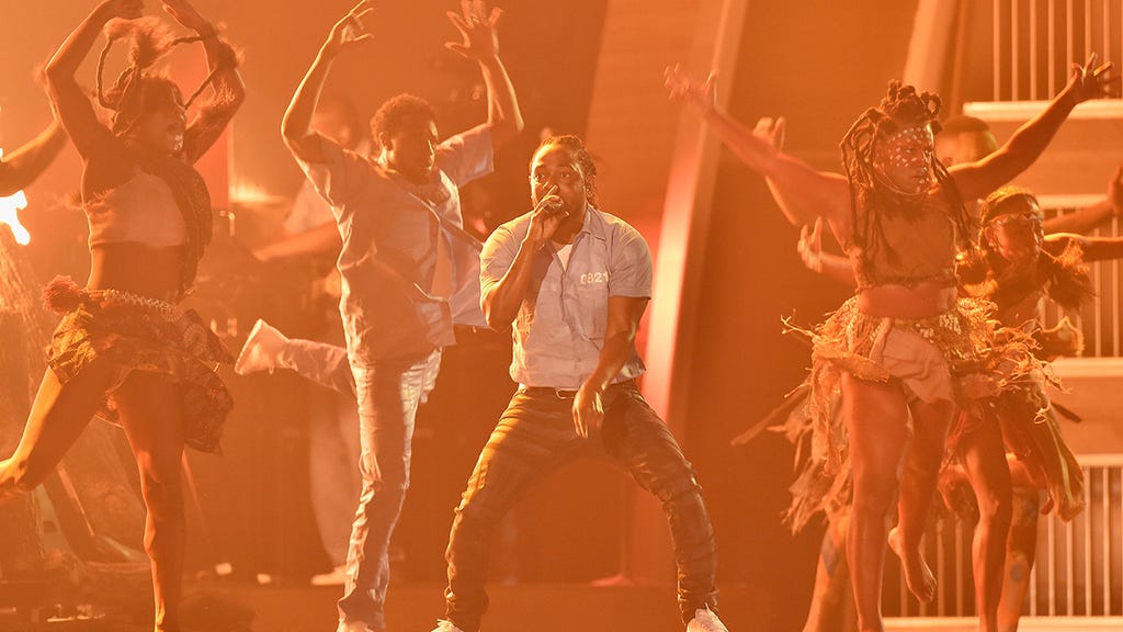 Lamar closed out his intense set with powerful new verses, against the backdrop of a map of Africa with "Compton" written across it, that got the star-studded Staples Center crowd -- including Ed Sheeran, The Weeknd and Andra Day -- on its feet for a much-deserved standing ovation.
