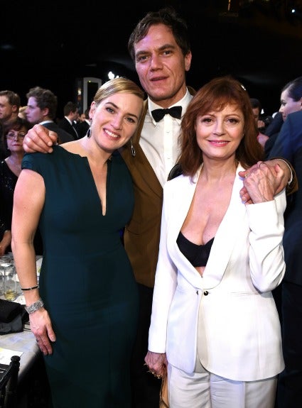In between awards, the Steve Jobs star couldn't help but gawk at the 69-year-old actress' cleavage, jokingly placing her hand on Sarandon's chest with her mouth agape during a photo op. Oh, Michael Shannon was there too.