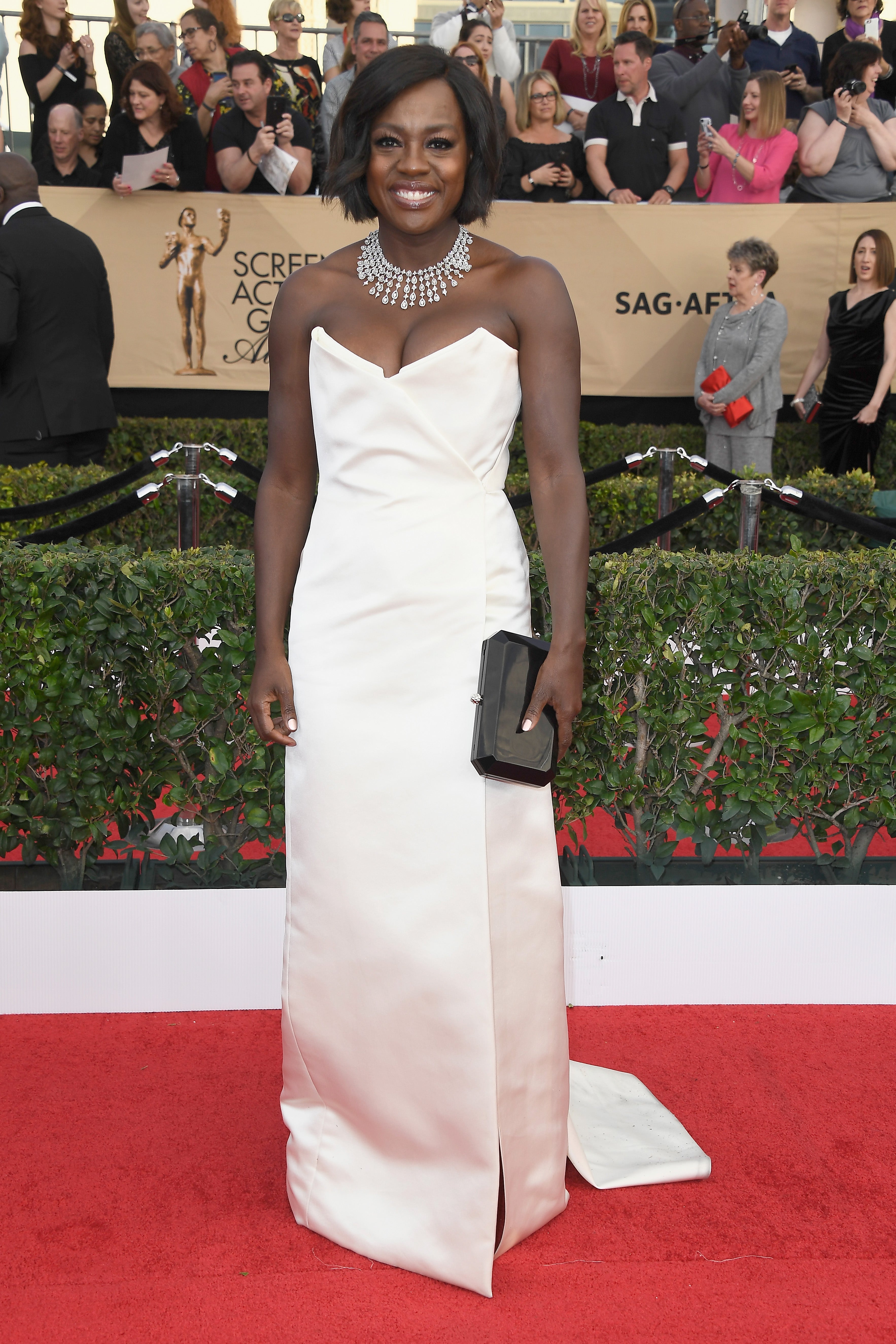 Viola Davis was beautiful in winter white! The Fences star stunned in an elegant white Vivienne Westwood gown and a show-stopping diamond necklace by Nirav Modi.