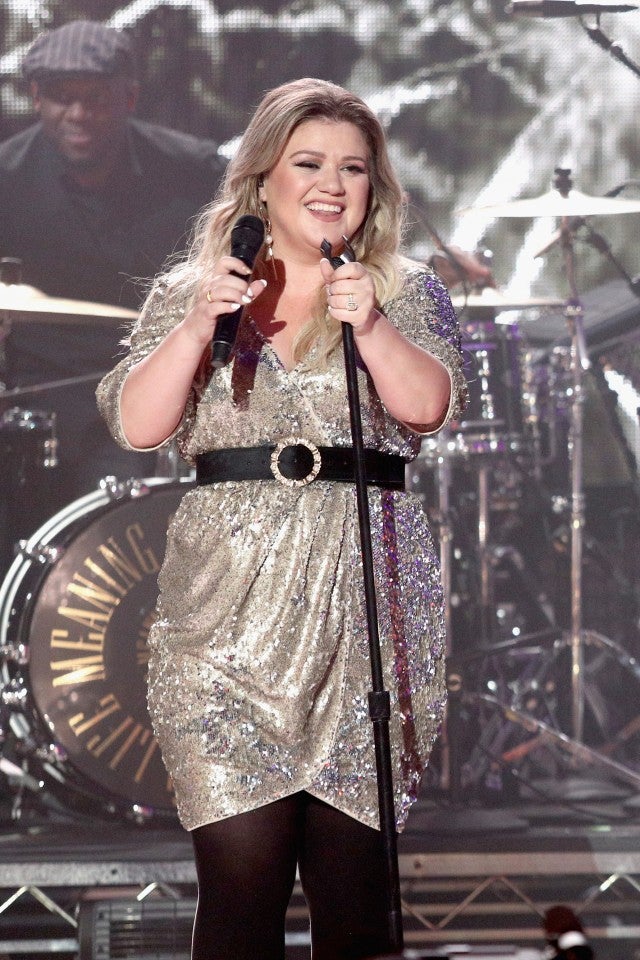 Kelly Clarkson glistened in gold when she hit the stage in Los Angeles for Dick Clark's New Year's Rockin' Eve with Ryan Seacrest 2018.