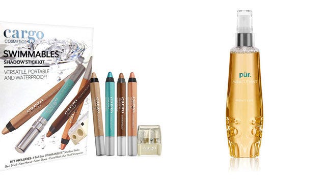 As the summer heat wave rolls in we're showing you some no-sweat beauty products to keep you looking great all season long. We found this Cargo shadow stick kit with waterproof eye shadow that won't smudge, crease or fade, and this Pür Minerals Miracle Mist to moisturize, soothe and refresh your face while locking down your makeup for all-day protection.