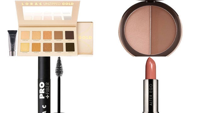 A nice glow never goes out of style, and we found some items at Kohl's to help achieve the look -- LORAC Unzipped Gold Eyeshadow Palette & Eye Primer Set (top left), LORAC TANtalizer Highlighter & Matte Bronzer Duo (top right), LORAC PRO Plus Fiber Mascara (bottom left), LORAC Alter Ego Lipstick (bottom right).