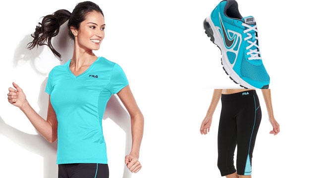 Getting in shape may be hard work, but it doesn't have to look that way. Ditch those tattered sweats for these sleek looks from Kohl's that will help you hold on to your style while dropping the pounds -- Fila Sport Core Essential Racer performance tee, Nike Air Dictate 2 running shoes and Fila Sport Colorblock active capri yoga leggings.