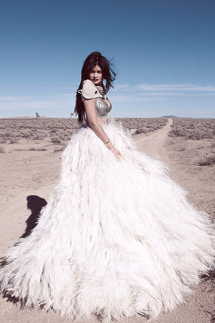 The 18-year-old reality star debuted a sexy new photoshoot on her website and app on Thursday, posing in the desert in a strappy monokini and a flowing feathered gown.