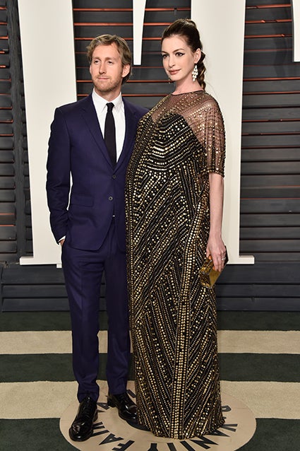 Hathaway walked the carpet with hubby Adam Shulman, whom she married in September 2012. The couple are expecting their first child this spring.