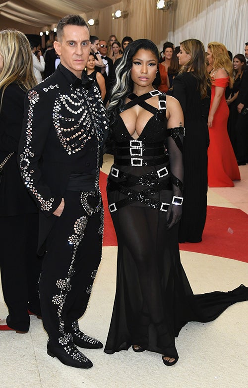 Nicki Minaj’s boyfriend (fiance? husband? We can’t keep it straight.) Meek Mill is technically on house arrest right now, but this probably wouldn’t be his scene anyway. The rapper rolled with the Moschino gang on the Gala red carpet, posing alongside creative director Jeremy Scott in her sexy, strappy gown.