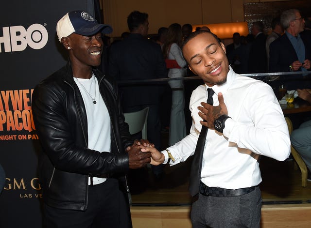 Rapper and CSI: Cyber star Shad "Bow Wow" Moss looked honored to meet Avengers: Age of Ultron star Don Cheadle at the Showtime/HBO Pre-Fight Party.