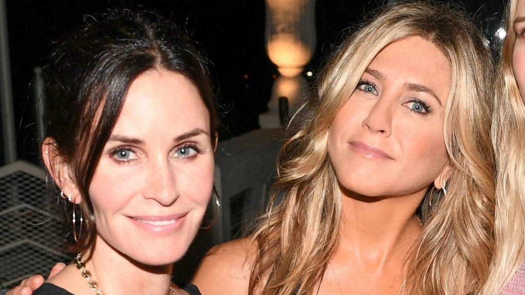 The pair wore coordinating black ensembles: Aniston rocked a low plunge and a long necklace, while Cox donned a chic long-sleeved number.