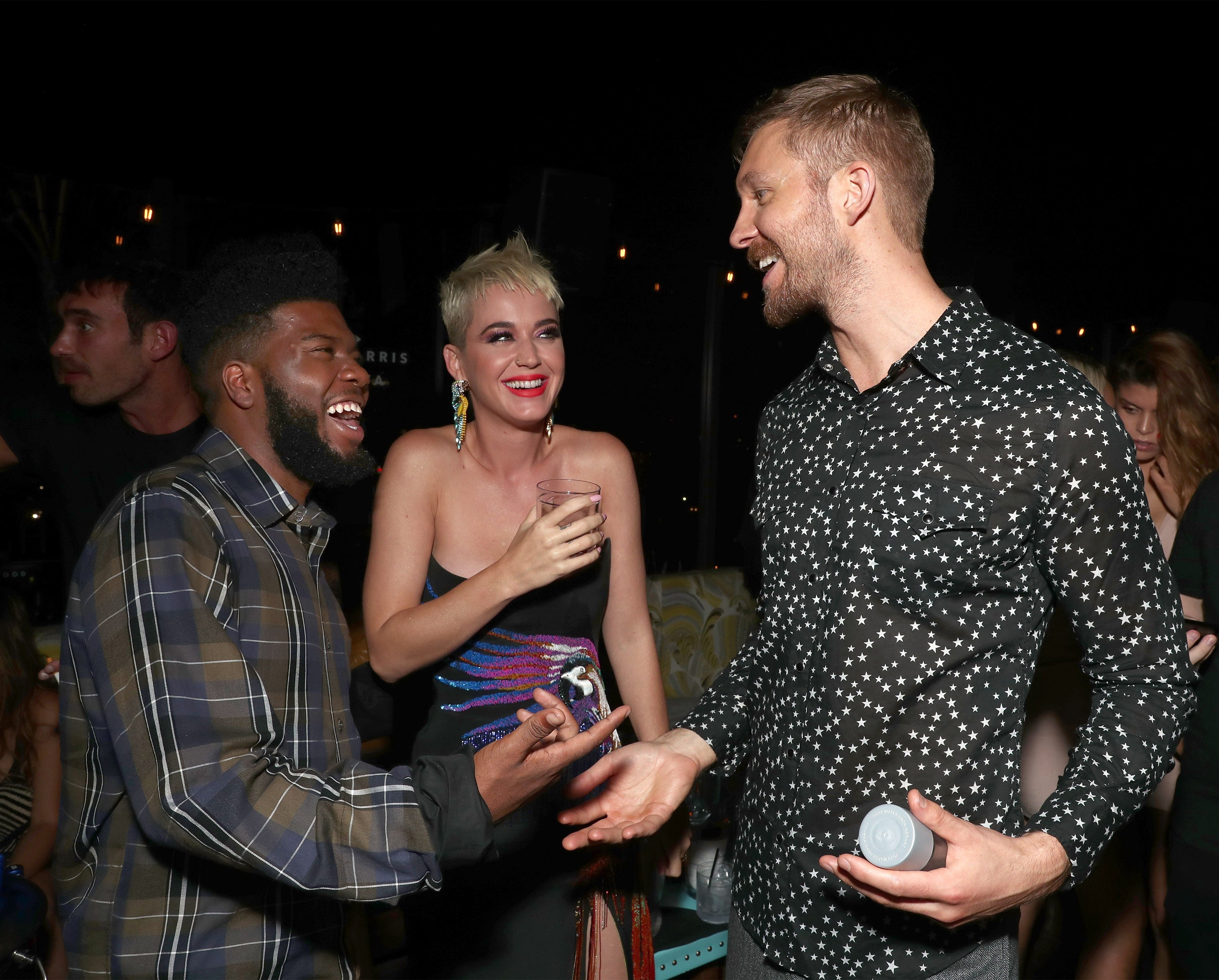 The “Feels” singer celebrated her 2017 MTV Video Music Awards hosting gig on Sunday night by hitting an after-party at West Hollywood’s Poppy nightclub, at one point seen laughing it up with collaborator -- and Taylor Swift’s ex -- Calvin Harris, and “Location” singer Khalid.
