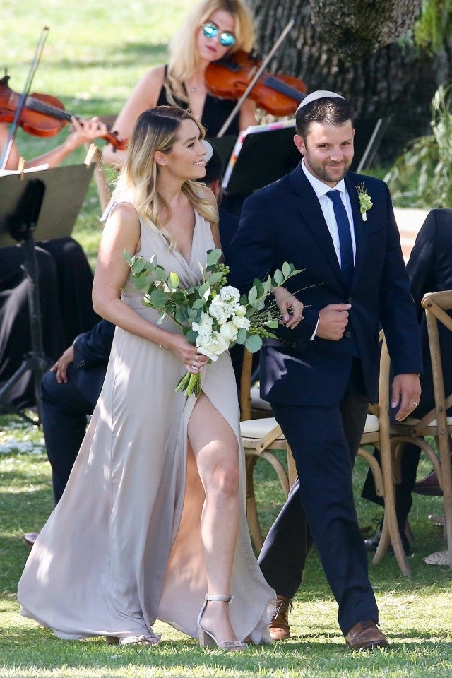 Just six weeks after giving birth, Lauren Conrad stunned as a bridesmaid in her friend Cassandra Herschenfeld's wedding to Ben Katz in Ojai, California, on Saturday.