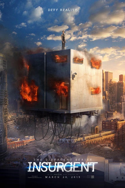 In the newly released poster for Insurgent, we see a brave, stoic Shailene Woodley standing on top of a cube-shaped building which is on fire. It's also floating in mid-air through the middle of a post-apocalyptic cityscape, but that's beside the point.