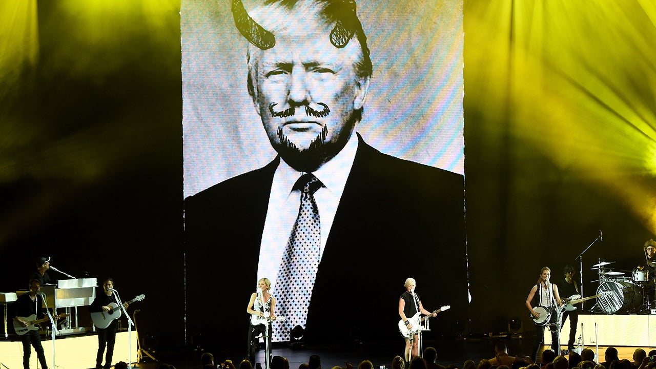 No, the willful frontwoman didn't say his name once -- she didn't have to. Instead, a giant photo of Trump, showcased on a video screen behind the band, was defaced with bad facial hair and devil horns. Earlier, pre-show ads featuring Planned Parenthood, the Human Rights Campaign and Proclaim Justice, which advocates for innocent prisoners, let the female-heavy audience know that the country progressives are still standing up for what they believe in.