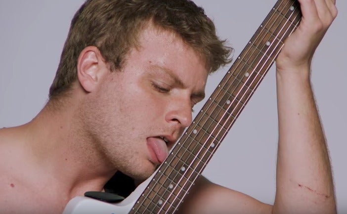 74. Mac DeMarco licks his guitar.