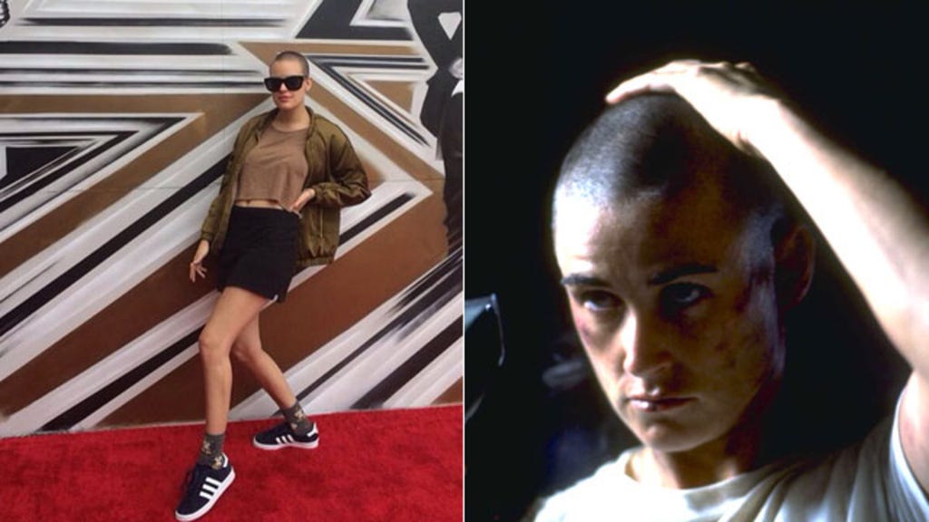 Tallulah then posted a pic of her Moore in 1997 when she shaved her head for the military drama G.I. Jane. She captioned the photo: "mawms is bae. #thankgodgoodheadshapesruninthefamily."