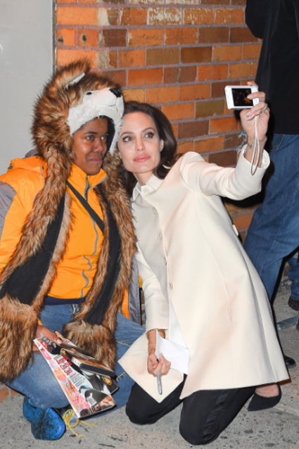 The Maleficent actress went on The Daily Show with Jon Stewart on Dec. 4, and there was a typical, crowded group of fans waiting behind metal barriers for her outside to catch a glimpse, a picture or an autograph.