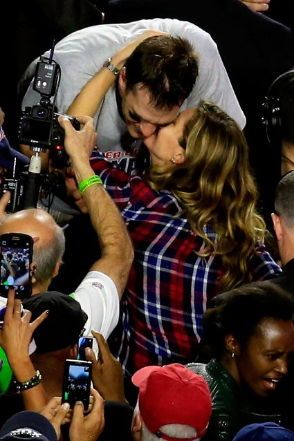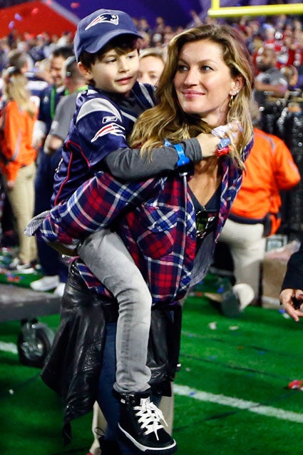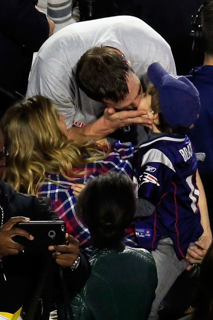 New England Patriots quarterback Tom Brady celebrated his big win Sunday night alongside his supermodel wife Gisele and their kids -- Benjamin, 5, and his son with actress Bridget Moynahan, John, 7 -- and the genetically perfect couple was pretty much the picture of domestic bliss.