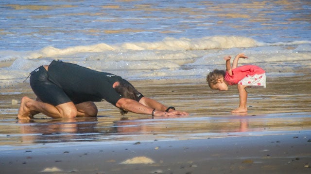 As if this day could get any cuter, the next pic shared was of Hemsworth doing yoga with India. "Like father like daughter!" Pataky, 38, gushed. "Make a space in your life for the little moments that count the most. #family #beachTime #yogadad."