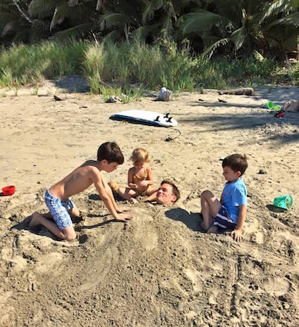He posted a photo of himself on Facebook with his kids burying him on the beach.