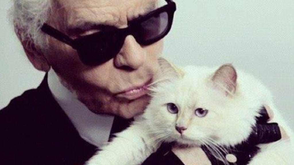 “They play with her,” Karl explained like that's a normal thing. “They have to take care of her beautiful white hair, the beauty treatments for her eyes, and they entertain her. She is the center of the world. If you saw her, you would understand. She is kind of Greta Garbo...She’s an inspiration for elegance. For attitude.”