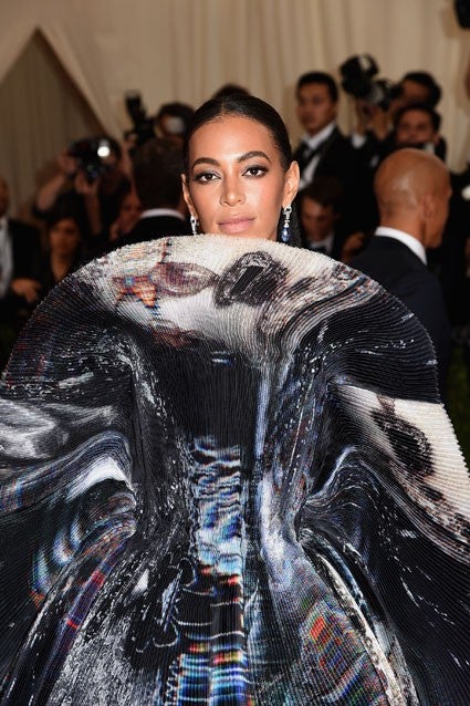 Solange is attending the 2015 Met Gala wearing some creation of Giles that is not a dress.