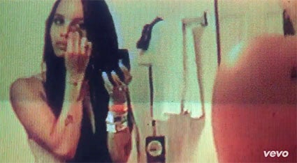 The video opens with grainy footage of Kravitz (daughter of Lenny Kravitz and Lisa Bonet, and one of the stars of the upcoming Mad Max: Fury Road) waking up and getting dressed.