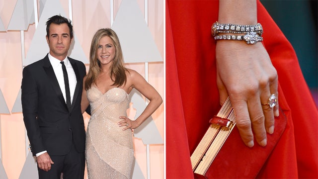 Actor Justin Theroux popped the question back in August 2012 with an estimated 8-carat radiant-cut diamond, but the actors have yet to officially tie the knot.