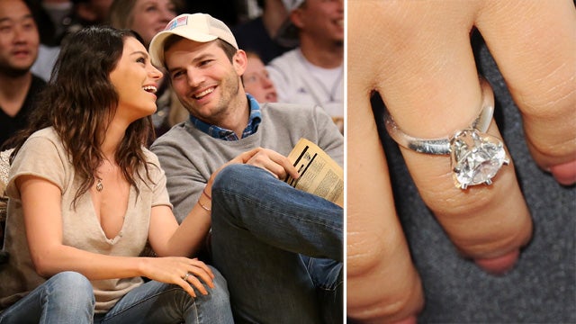 After nearly two years of dating, Ashton Kutcher proposed to his former That '70s Show co-star with a minimalist-style engagement ring -- but there's nothing minimal about that diamond! Estimated to be 5 carats, the ring is likely worth upwards of $260,000. The two haven’t officially admitted to being married yet, but Mila's ring finger tells another story.