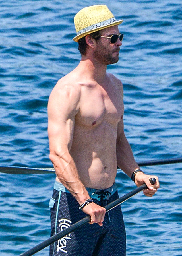 Nah, it’s just our very own God of Thunder on a paddle board in France! Look how jovial he is to be there! Hemsworth was vacationing off the Island of Corsica over the Fourth of July weekend and appears to have been shirtless basically the whole time.