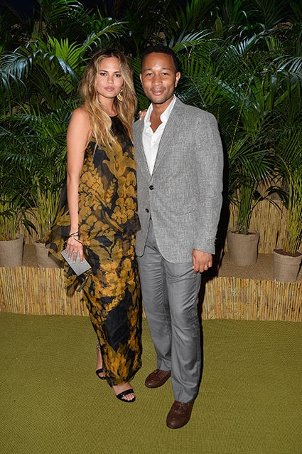 Chrissy Teigen also made an appearance with her husband, John Legend, but covered up in a printed yellow-and-black creation.