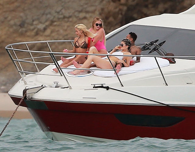 And that's not the only PDA the two were showing. Check out Kylie lying between Tyga's legs on a yacht.