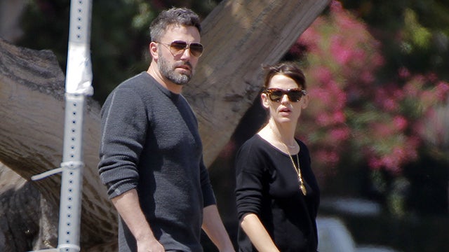 The exes continue to put their kids first, with Affleck flying to Atlanta to see his family. Though they stay in separate locations -- Jen is at a hotel while Ben stays at her rental home -- the two are spotted bringing the kids to a local mall on Saturday, before Affleck flies back to Los Angeles on Sunday. Both parents wear their wedding rings throughout the weekend. Before the nanny scandal broke, the whole family stayed at the rental house together when Affleck visited Atlanta.