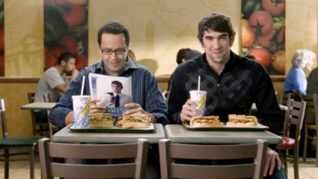 1. Michael Phelps: The celebrated swimmer and most-decorated Olympian of all time satiated his legendary appetite with Jared in 2009. The campaign was slightly delayed after the athlete's marijuana scandal in which he was photographed with a bong.