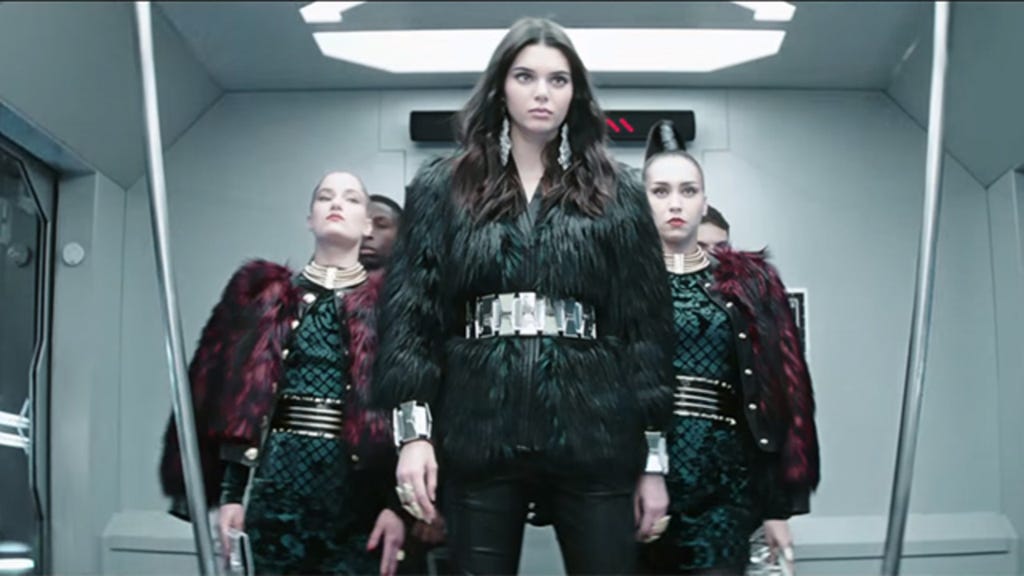 The reality star-turned-model didn’t get picked to be in Taylor Swift’s star-studded music video, but she gets the chance to flaunt her own squad, The Kendalls, in this futuristic new ad for Balmain x H&M. Check it out: