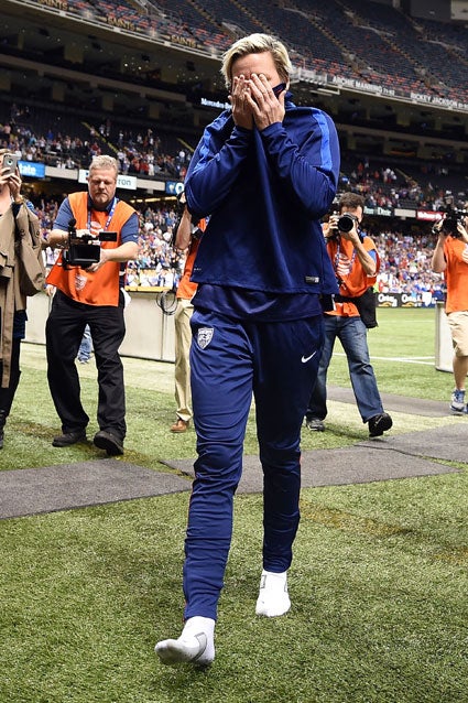 Before walking off the field for the last time, the 35-year-old athlete expressed her gratitude for the U.S. team and her fans. "It has been my pleasure and my honor to represent the fans for as long as I've been able to," she said, tearing up. "Before I get emotional, I just want to genuinely express how much I've given myself to this team and how important it is to give all of yourself to whatever you want to do in your life as a passion."