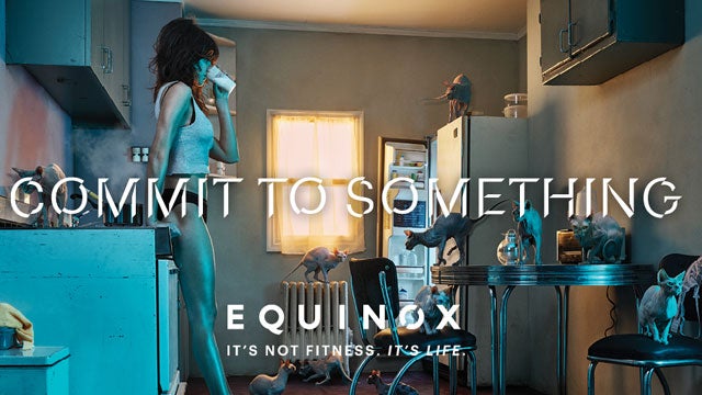 The "Commit to Something" campaign seem to be promoting anything but fitness. Other Equinox ads include a cat lady, an orgy scene, a nearly-naked man lying in money and a super chiseled cult leader. The tagline reads: "It's not fitness. It's life."