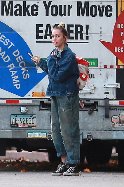 Miley dressed comfortably for the occasion, sporting overalls under a denim jacket and wearing hi-top Chuck Taylor sneakers. Liam also appeared to be dressed for the cold, as he was spotted leaving his house wearing a wool jacket and a hat. An eyewitness tells ET that it "definitely looked like [Miley] was moving," adding that she was "upbeat, looked good, happy and excited."