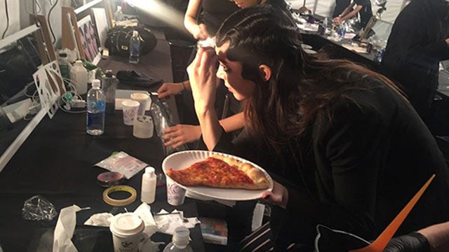 While models usually admit to fasting or eating light during this time of year, the 20-year-old reality star revealed on her subscription-only website and mobile app that she dined on a slice of pizza before stepping out on the catwalk.