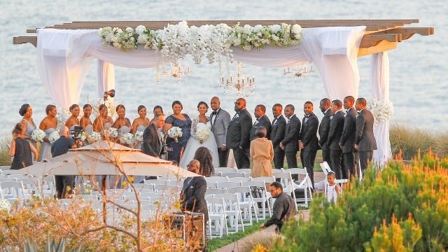 The wedding took place Saturday evening around sunset at the Terranea Resort in Rancho Palos Verdes, California, in front of a wooden altar draped in white cloth and flowers.