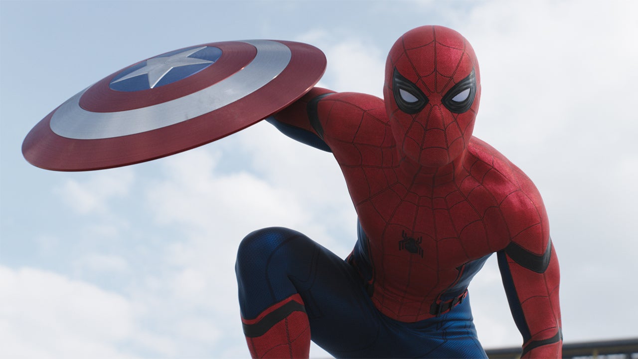Yep, that's our first look at your friendly neighborhood Spider-Man -- or as Tony Stark (Robert Downey, Jr.) calls him, "Underoos" -- swinging his way into the Marvel Cinematic Universe. Not only do we get to check out the new suit, but Tom Holland get his first pithy one-liner!