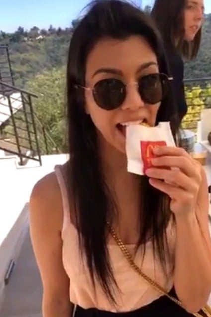 Surprisingly, the catering was provided not by some fancy Hollywood chef, but by McDonald's! The spread included breakfast muffins and hash browns, which Kourtney revealed are gluten free. Good to know!