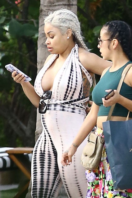 The 28-year-old model showcased her growing belly when she stepped out on Monday in Miami, Florida, wearing a tight, cut-out jumpsuit. Chyna chose the summer style for a casual, poolside lunch with friends at her hotel.