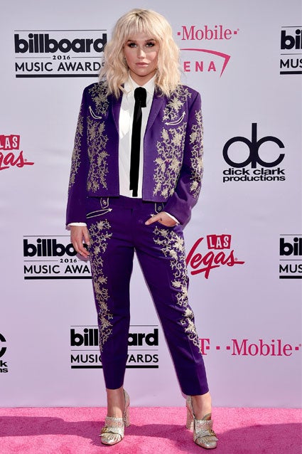 On the red carpet, Kesha seemingly paid homage to the legend in a purple suit.