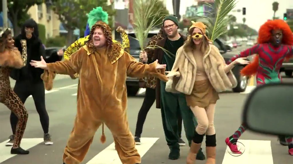 Talk about stopping traffic! On Wednesday’s episode of The Late Late Show with James Corden, Seth Rogen and Rose Byrne participated in the host’s crosswalk theatrical production.