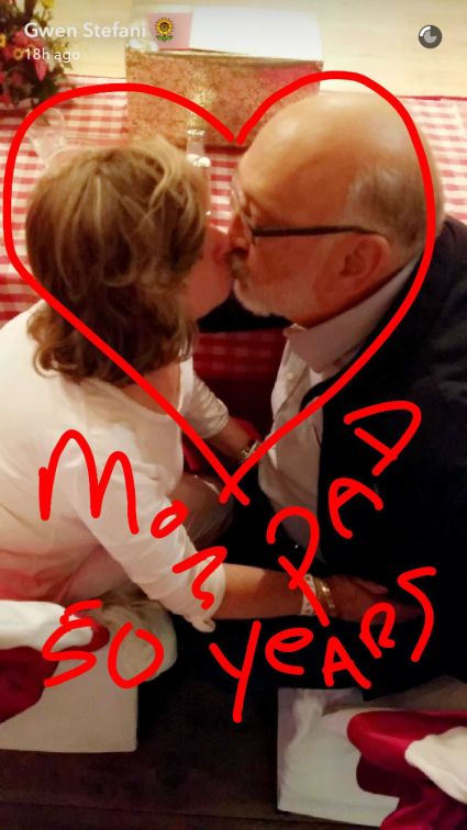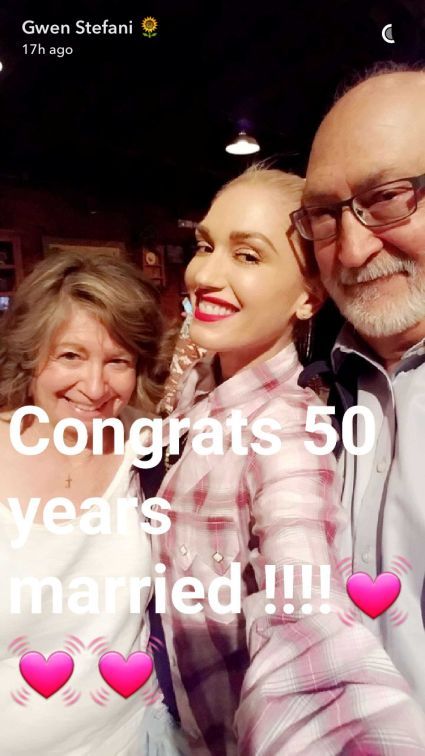 The "Misery" singer's parents, Patti and Dennis Stefani, celebrated their 50th wedding anniversary on Saturday at Knott's Berry Farm in Buena Park, California, with their family by their side. In typical fashion, Stefani documented the fun outing -- rollercoasters and all! -- via Snapchat.