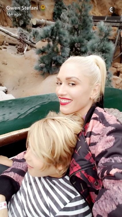 Also along for the adventures were Stefani's three children, Kingston, 10, Zuma, 7, and Apollo, 2, whom she shares with ex-husband Gavin Rossdale. Zuma was all smiles as he went on a water ride with his mom, who was rocking her signature red lipstick and a pulled-back ponytail.
