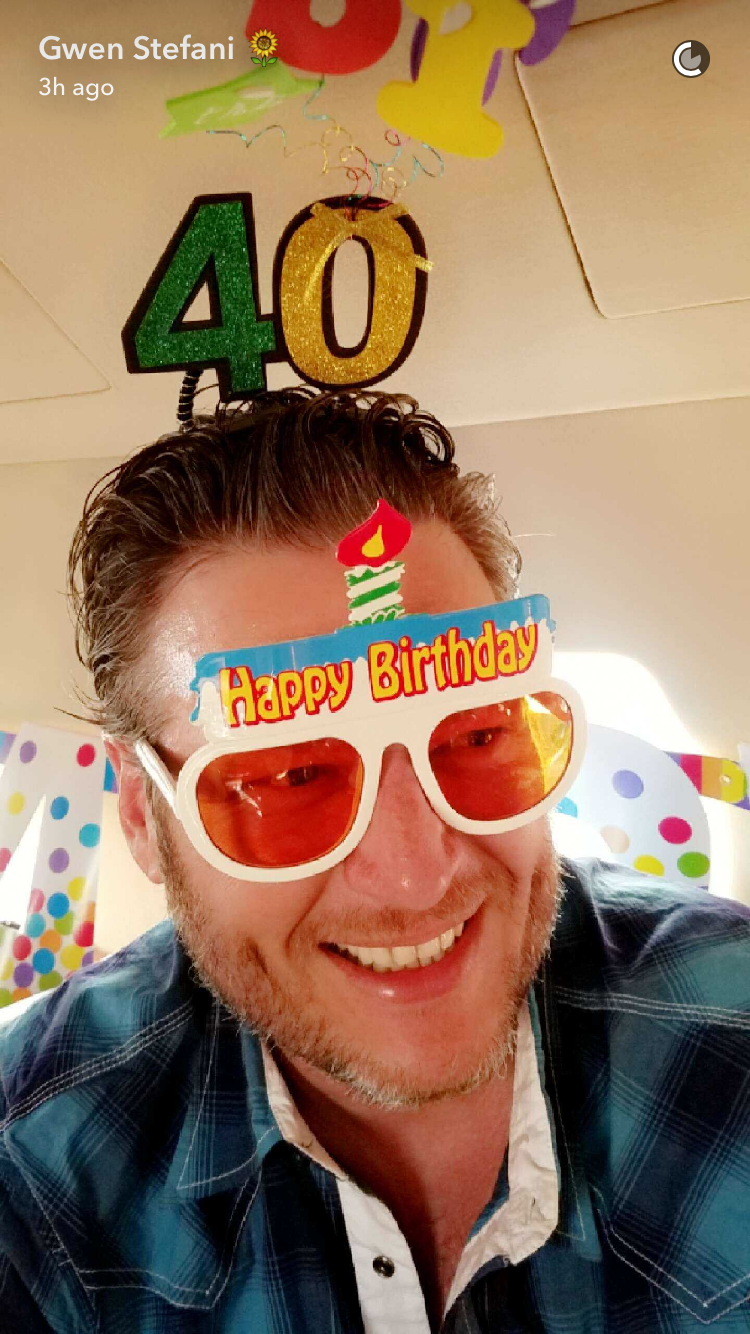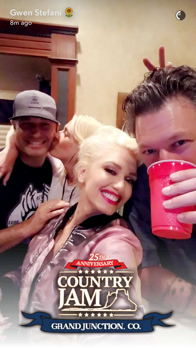 Gwen Stefani helped Shelton celebrate his birthday in a low-key but festive way as they traveled with his band and crew to Grand Junction, Colorado, for the Country Jam 2016 festival. The "Misery" singer captured their entire journey via -- no surprise here! -- Snapchat.