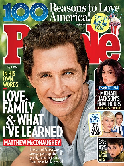 The Free State of Jones star tops People's first-ever "100 Reasons to Love America" list, but in a new interview with the publication, he gives all his love to wife Camila Alves and the couple's three children -- Levi, 7, Vida, 6, and Livingston, 4.